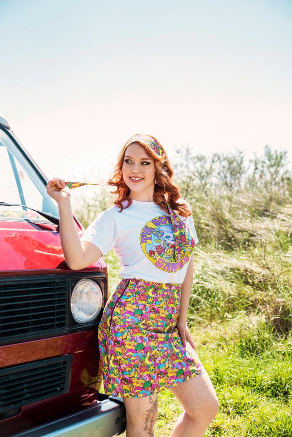 The Octopus Garden is een online vintage winkel gevestigd in Liverpool, UK. Wekelijks zet ze de meest fantastische vintage kleding online! Caitlin is de oprichtster van “The Octopus Garden” en wij van Retro Rebel vinden dat ze de meest geweldige groovy stijl heeft. Vorig jaar lanceerde ze haar eerste handgemaakte collectie “The Magic Meadow” met een speciaal ontworpen stof dat de signatuur is van The Octopus Garden. Deze stof heeft de helderste vrolijke kleuren vol lachende paddenstoelen, bloemen, manen en sterren waarvan wij denken dat dit de meest groovy jaren 60-collectie is. Het dragen van deze magische stukken brengt je terug naar de jaren zestig en zorgt ervoor dat je je de hele dag groovy voelt. Elk stuk is uniek en handgemaakt met liefde.